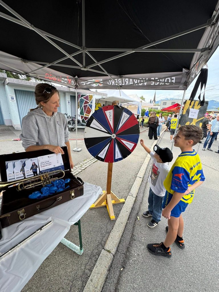 Und kaum waren die ersten Takte angespielt, stand auch schon der erste Auftritt beim Junker-Jonas-Markt auf dem Programm. Wir spielten zur Eröffnung einen Frühschoppen und waren auch mit einem Stand vor Ort, bei dem interessierte Kinder und Jugendliche die verschiedenen Instrumente ausprobieren konnte.