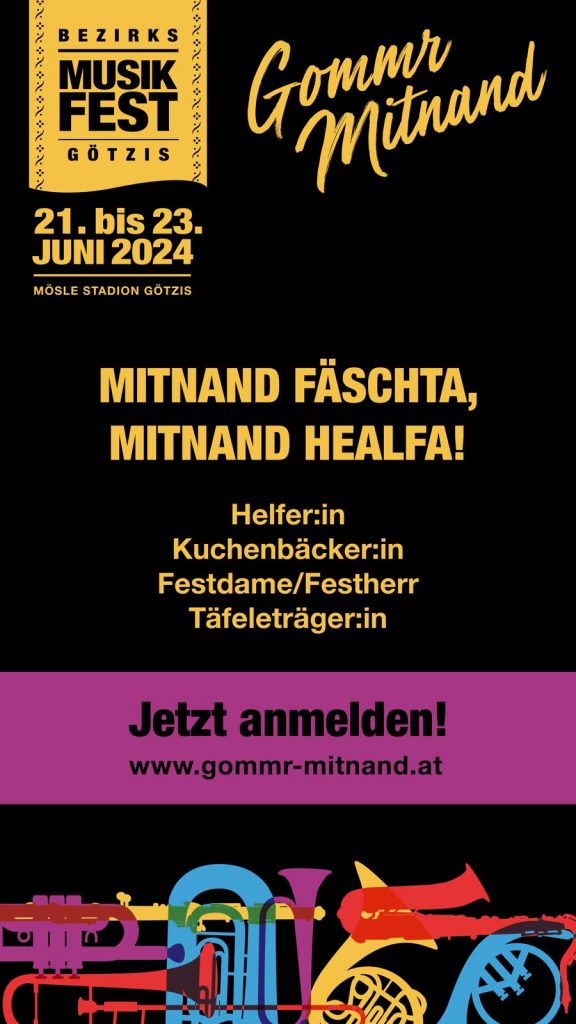 Wer helfen möchte, kann sich gerne auf der Fest-Webseite www.gommr-mitnand.at/mitwirken oder direkt unter walter.griesser@gemeindemusik-goetzis.at anmelden.