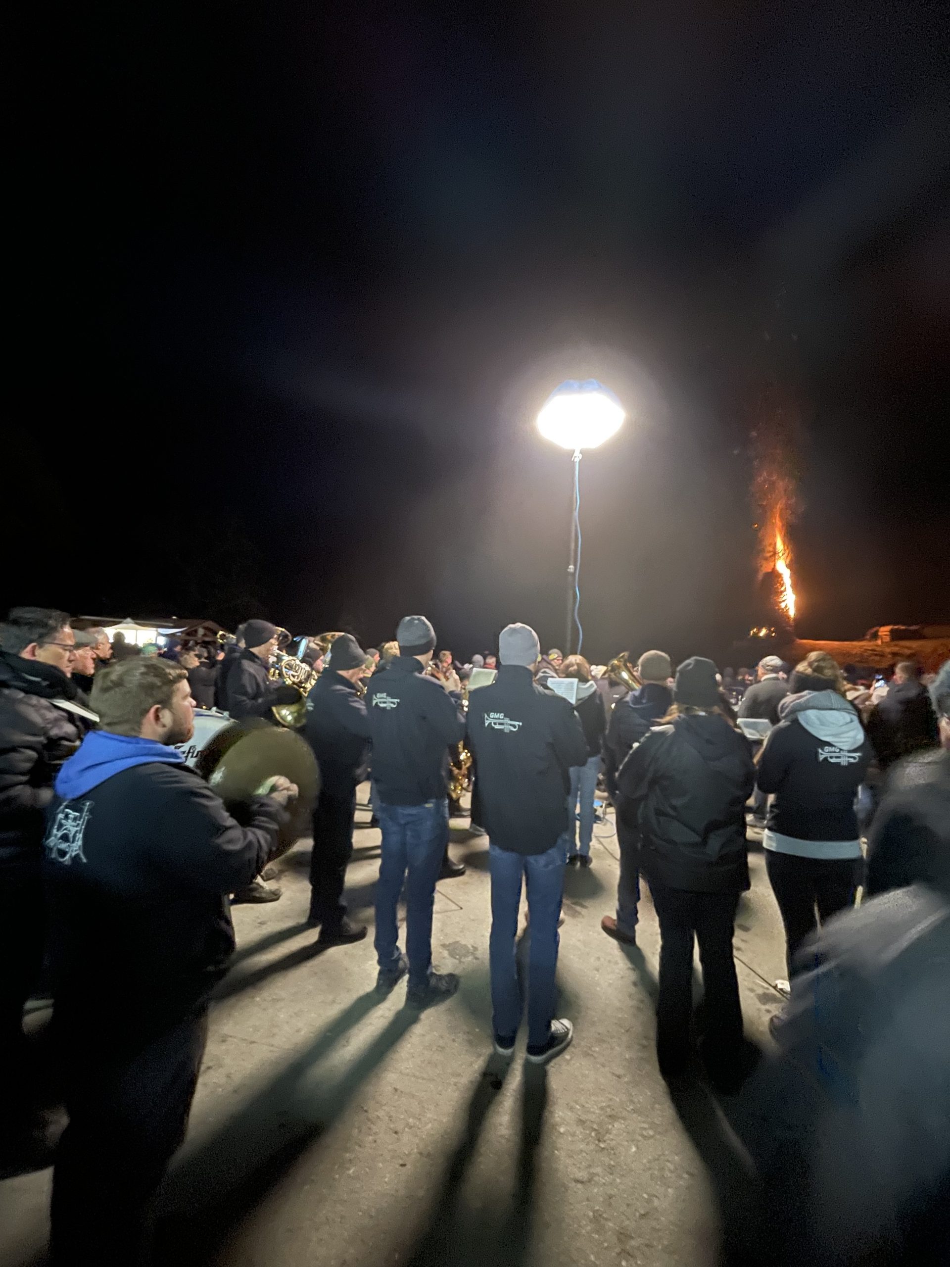 Dass der Winter erst noch vertrieben werden muss, das spürte unsere Siebner-Partie vor allem am Samstag beim Meschacher Funken am eigenen Leib. Bei Minusgraden musizierten sie was das Zeug hielt und heizten dem Publikum – neben dem Funken – ordentlich ein.
