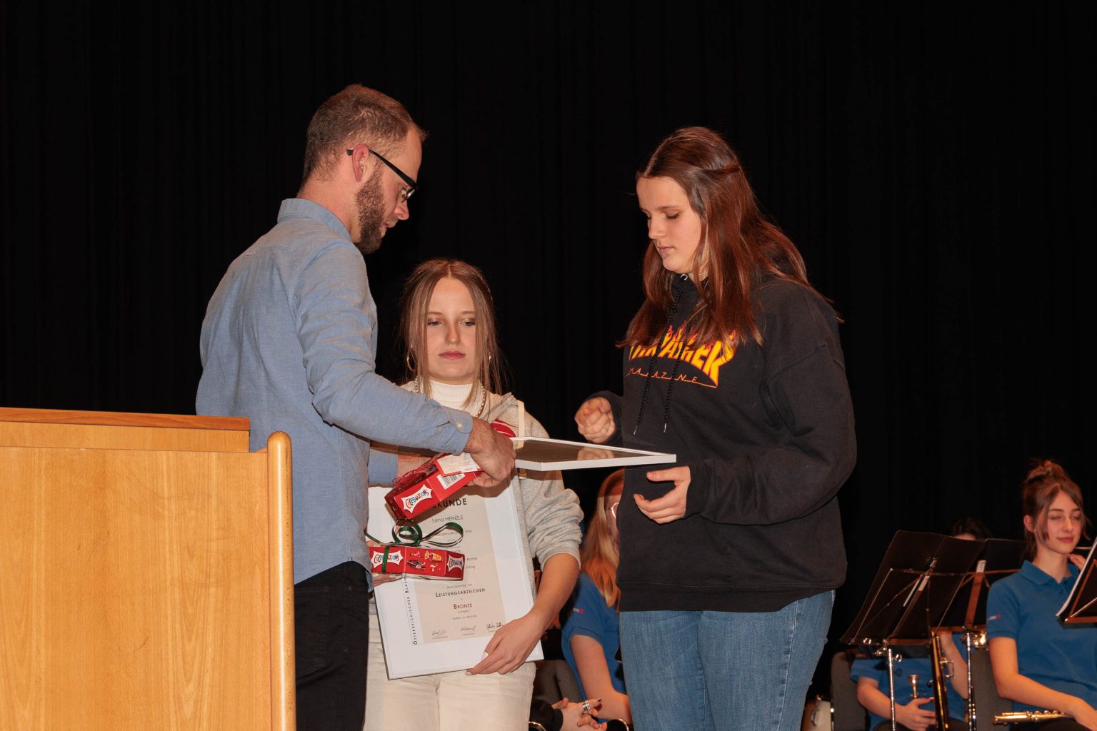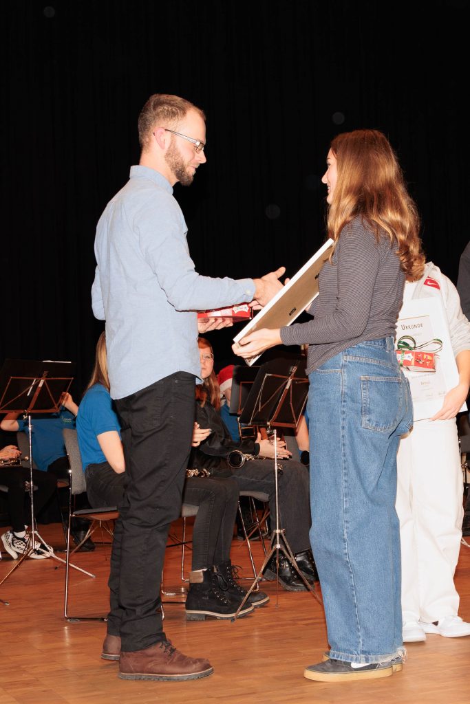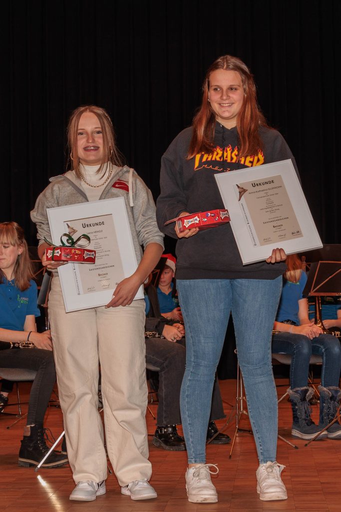 Im Rahmen der Weihnachtsfeier, am Samstag dem 17. Dezember, fand im Beisein aller Musikant:innen und Ehrenmitgliedern inkl. Begleitung sowie allen Jungmusikant:innen mit ihren Familien die Übergabe der Jungmusikerleistungsabzeichen statt.