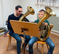 Anschließend ging es mit einer Gesamtprobe weiter. Dabei wurden die Stücke gemeinsam durchgespielt und die zuvor geübten Stellen noch einmal zusammen ausprobiert. Mit viel Motivation und Einsatzbereitschaft zeigten die jungen Musiker:innen ihr Können und machten hörbare Fortschritte.