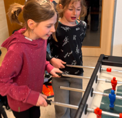 In der Pause wurde nicht nur kurz durchgeschnauft – es wurde auch fleißig Tischfußball gespielt, wobei der Spaß natürlich nicht zu kurz kam.