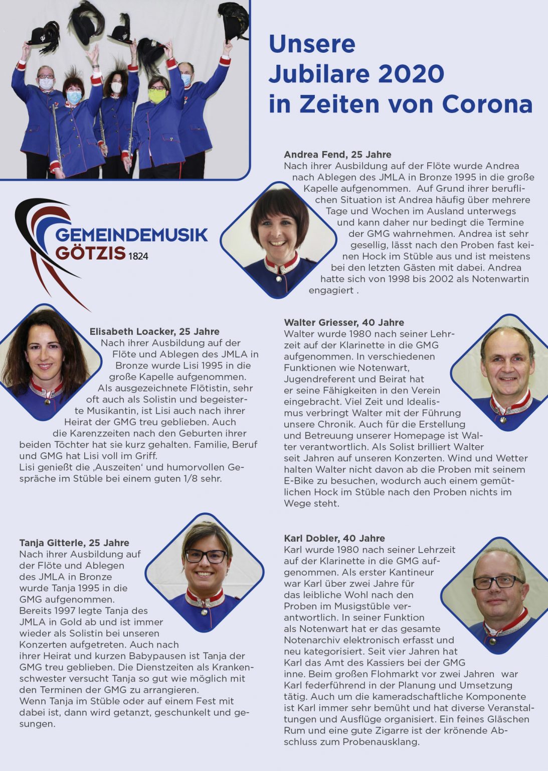 2020 durften wir Andrea Fend, Tanja Gitterle und Elisabeth Loacker zu 25 Jahren sowie Walter Griesser und Karl Dobler zu 40 Jahren gratulieren. Vielen Dank für Euren Einsatz. Wir freuen uns auf viele weitere Jahre gemeinsam mit euch.